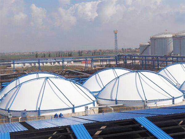 污水池加蓋,顧名思義就是在污水池的上方用膜材蓋在上面,四周會有鋼結構進程支撐,只要就是為了讓有毒、惡臭的氣味能夠和空氣進行隔絕,但是也會在膜材的結構中增設凈化塔,主要是為了將廢棄經過凈化塔的時候產生凈化的作用,如果選擇的比較合理的話,正常情況下能夠將廢棄的90%都處理干凈,剩余的部分也不會對身體造成傷害。