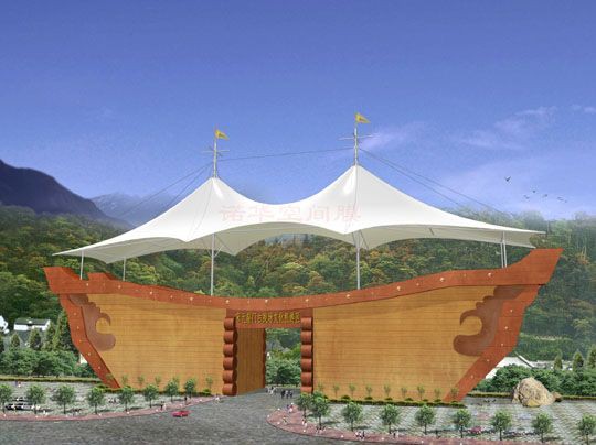 膜結構棚更大跨度的建筑空間:由于膜材料具有非常輕的自重(約1000g/m2),因此膜結構克服傳統(tǒng)結構在大跨度(無支撐)建筑上所遇到的困難,可創(chuàng)造無遮擋可視空間。